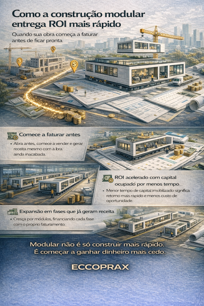 Quando sua obra começa a faturar antes de ficar pronta** No mundo empresarial, o tempo é um ativo financeiro. Cada dia que uma operação não está funcionando é receita que deixa de existir. E é exatamente nesse ponto que a construção modular muda completamente a lógica de investimento em infraestrutura. Enquanto o modelo tradicional imobiliza […]
